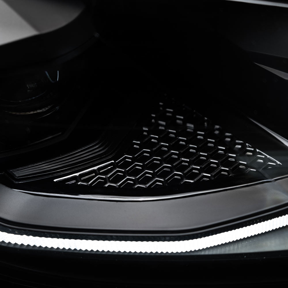 he Golf MK6 R had a factory option for black shrouds, an absolute trend setter for it's time yet rarely seen on modern VAG cars. We blend modern 7.5 styling with the iconic MK6 black look. It took eighteen sample finishes to settle on a satin black which shows micro texture under sunlight yet provides a total blacked out look in darker conditions. Since the shrouds are black, the lens remains 100% clear and transparent ensuring maximum light emittance from the LED projector. Say no to headlight tinting.