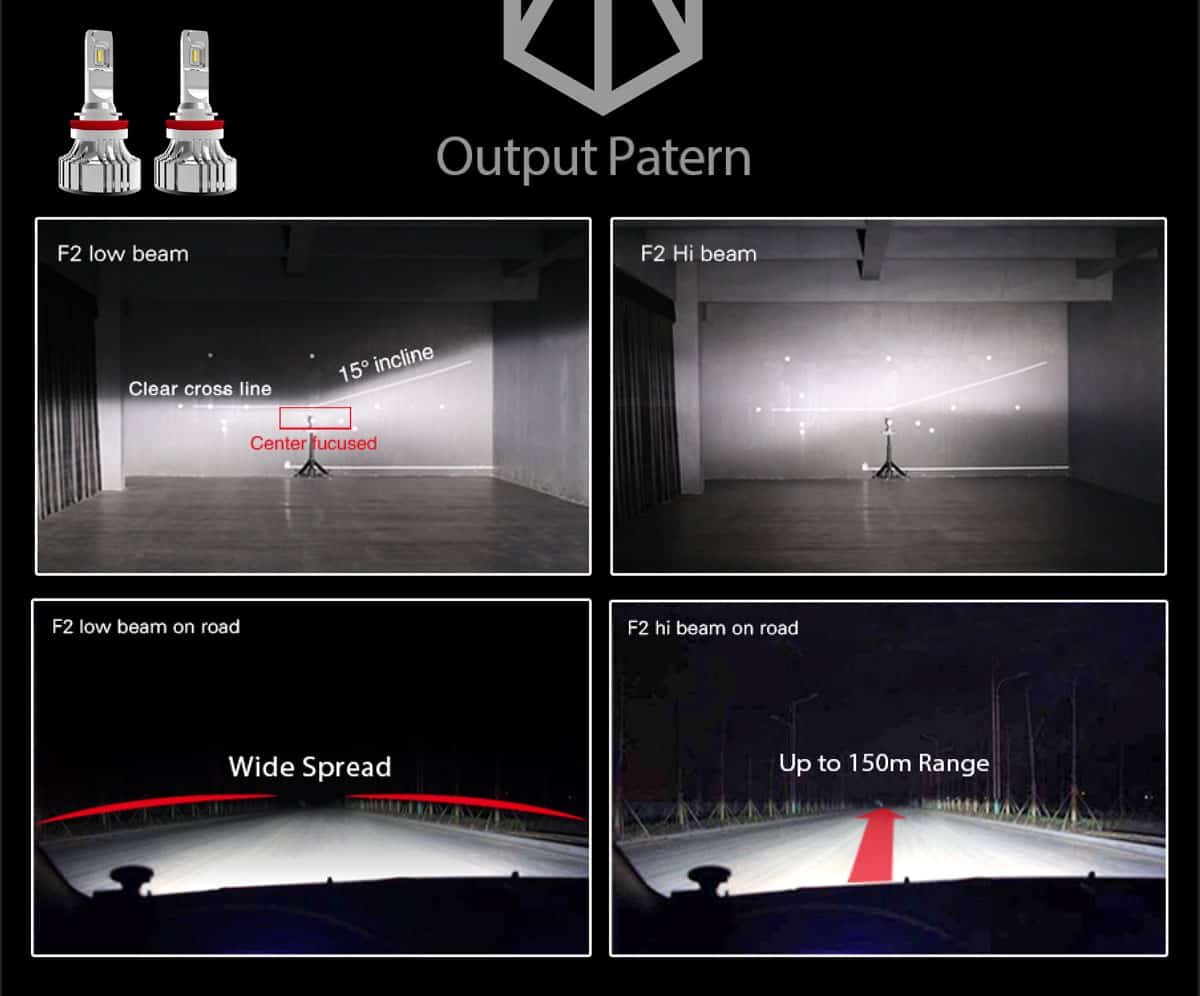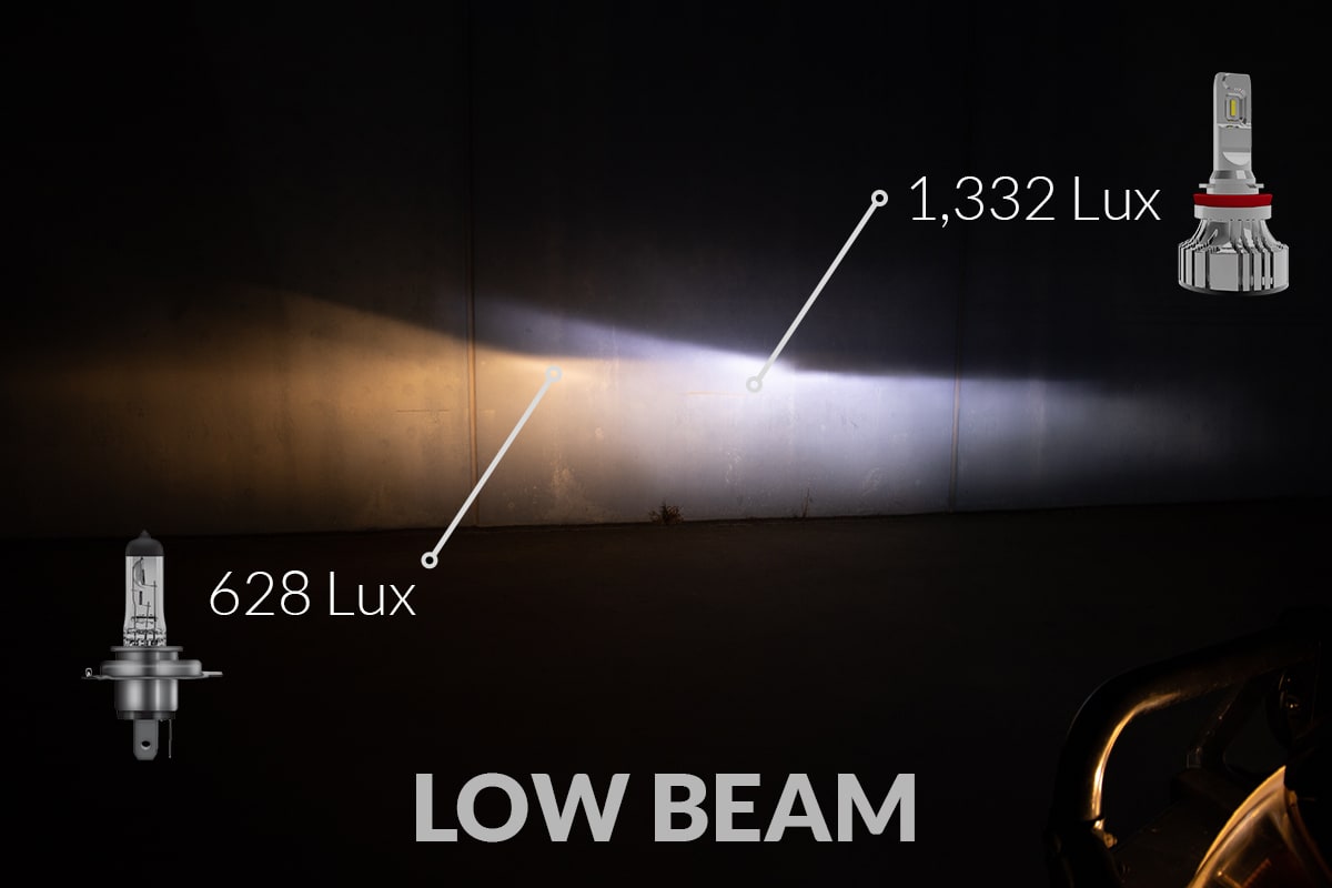Head to head the V4.0 outperforms in both lumen output and beam pattern focus. Traditional headlight LEDs create several light sources from the widely placed led chips, by tightly fitting the new NLW1860CV2 LED chips in a row they act as one light source which produces a closer output pattern to the original halogen filament. Beam accuracy consistency is increased removing the guess work and trialling of LED kits to match the reflector.