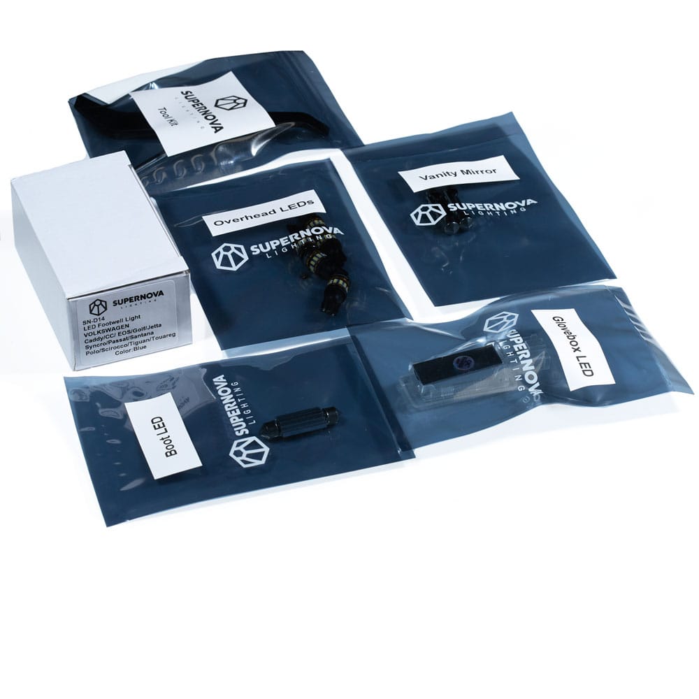 We are ecstatic with the development of this kit. In fact, this was one of Supernova's founding products and has had dozens of iterations over the years. In 2021 we achieved a final form utilising our bespoke Radiant T10 LEDs for overhead lights, full housings for the glovebox and footwell lights which equated to better light coverage and easy installation and a high output boot light.